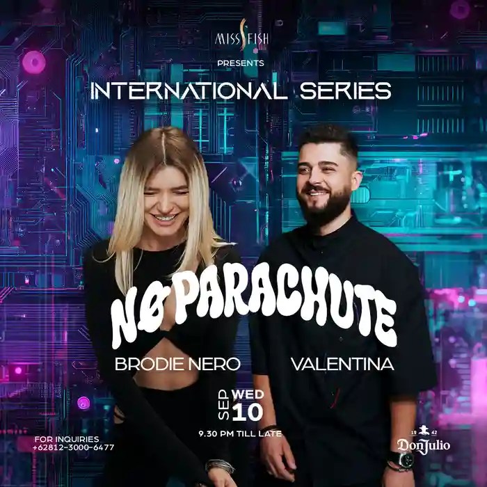 International Series at Miss Fish This Wednesday, Sept 10th we welcome No Parachute Also featuring: Brodie Nero & Valentina From 9:30 PM till late A