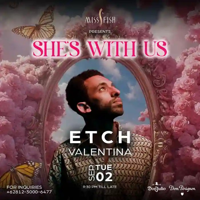 She’s With Us This Tuesday night, step into a world of music, magic, and unforgettable vibes at Miss Fish Bali. Featuring ETCH & Valentina bringing