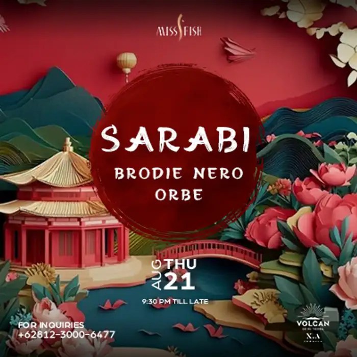 Sarabi takes over Miss Fish this Thursday night. Join Brodie Nero and Orbe for an evening of hypnotic beats, signature cocktails, and the vibrant atmosphere
