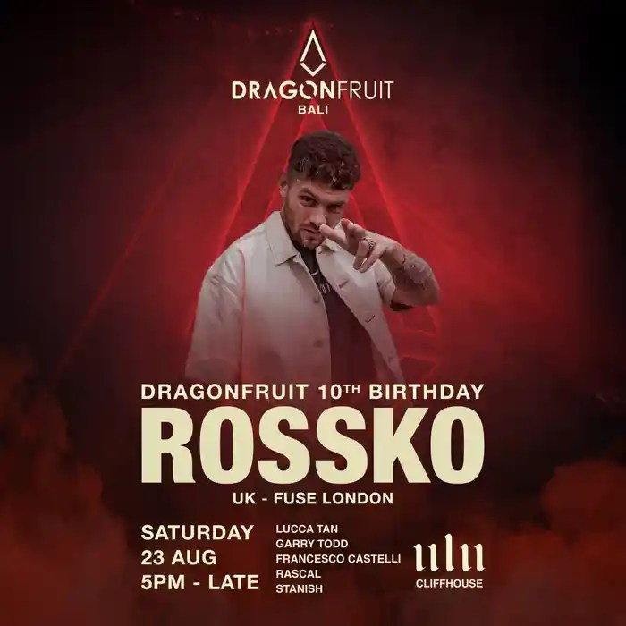 DRAGONFRUIT Presents Rossko | Ulu Cliffhouse 5:00 PM, Saturday, August 23, 2025 Expect a night of deep rhythm and refined energy at Bali, Uluwatu’s most