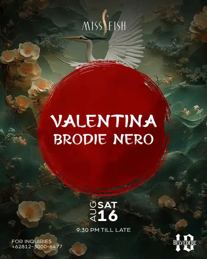 SATURDAY REVERIE at MISS FISH A night of sonic beauty and movement wrapped in elegance. This Saturday, Aug 16, surrender to the sounds of Valentina