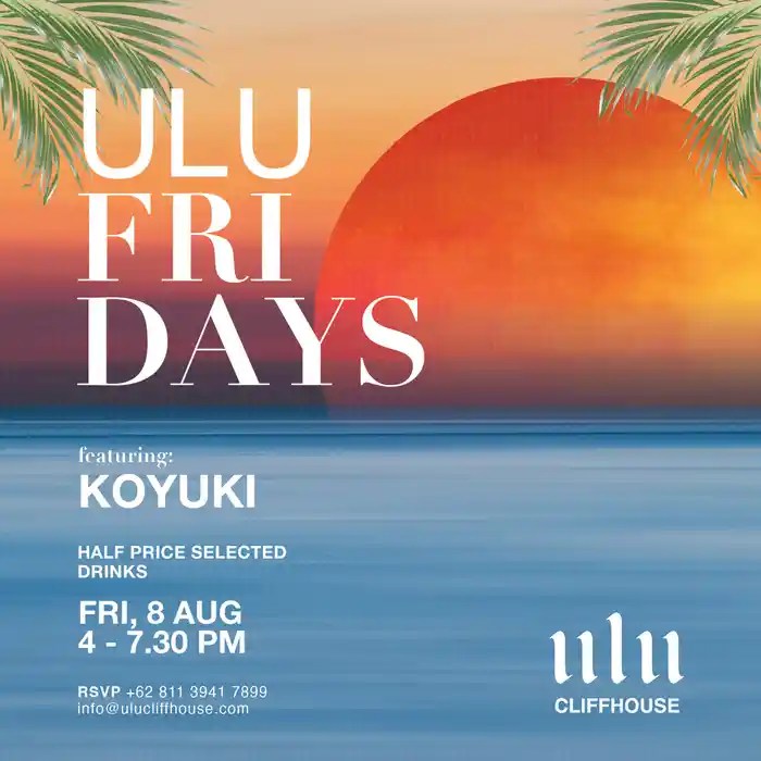 Spend the best Fridays at our clifftop playground! Treat yourself with your favorite half-priced drinks and dance away! Beats by Koyuki