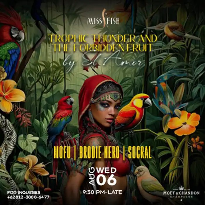 Enter the jungle of seduction at Miss Fish this Wednesday, Aug 6 Unleash your wild side with El Amor: Trophic Thunder & The Forbidden Fruit