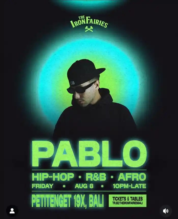Pablo takes over the tunnels, bringing his Hip-Hop, R&B, and Afro mastery. FRIDAY. 10pm-4am Online tickets IDR 200K, 1 drink incl. Note: Tickets are valid