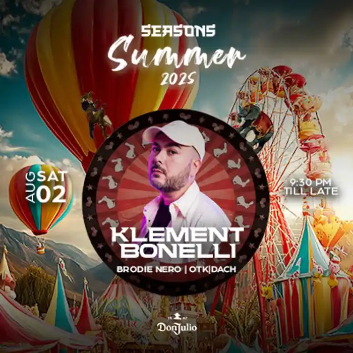 SEASONS: SUMMER – Day 2 is turning up the heat this Saturday, Aug 2 Featuring the legendary KLEMENT BONELLI with support from Brodie Nero &