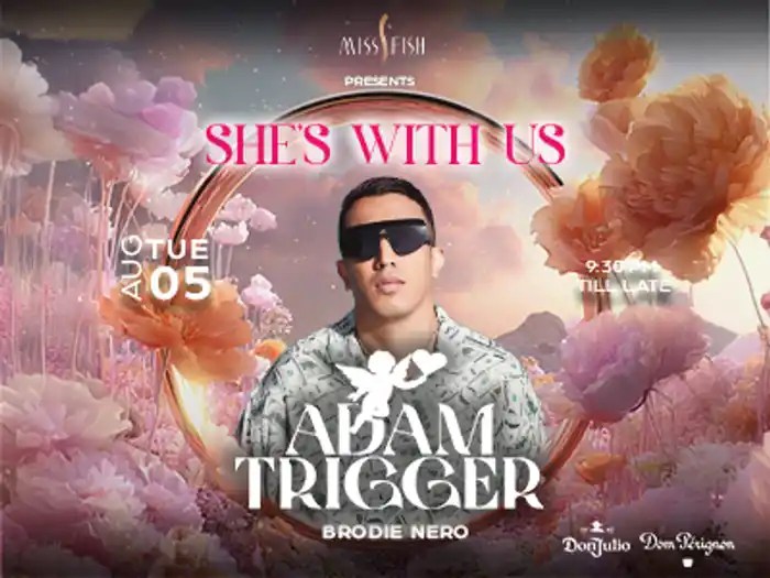 She’s With Us this Tuesday at Miss Fish Get lost in a dreamworld of sound with Adam Trigger & Brodie Nero behind the decks. Lose