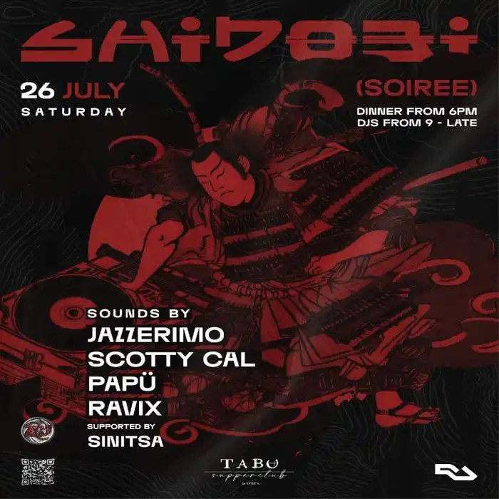 SHINOBI SOIREE JULY 27 TABU SATURDAY Tunes by: Jazzerimo. Scotty Cal. Papü. Ravix. Sinitsa Come vibe with us as we kick off a new chapter