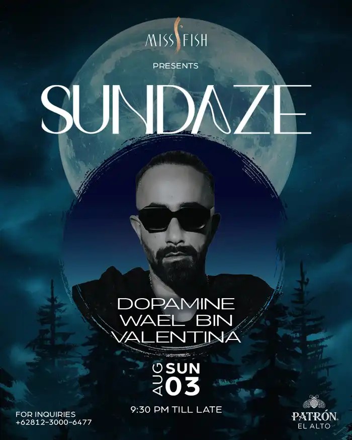 Moonlit grooves and deep Sunday moods. SUNDAZE returns this Sunday, August 3 with a hypnotic lineup: DOPAMINE, WAEL BIN, VALENTINA Let the night unfold under