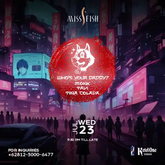 Neon dreams. Wild energy. Who’s Your Daddy is back. Strut into our electric playground this Wednesday as MONK, MAVI, and TINA COLADA deliver a full-throttle