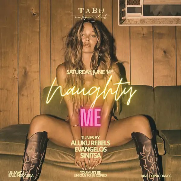 NAUGHTY ME Tunes by: ALUKU REBELS / EVANGELOS / SINITSA Limited spots available – secure your ticket now. Don’t miss out! TABU SUPPER CLUB.