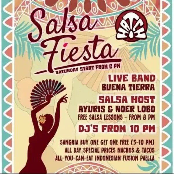 SALSA FIESTA Every Saturday from 5pm – 2am Salsa the night away every Saturday! Kick off at 5pm with our spicy salsa class & fire