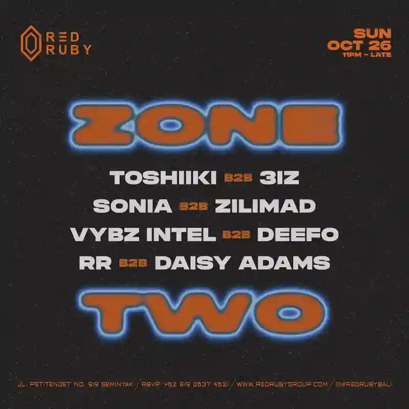 We’re turning up the heat with ZONE TWO — where the underground UK sound meets Bali’s wildest crowd! Think rolling house, dirty garage beats, and an atmosphere that hits different.