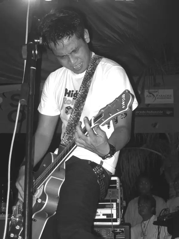 Photos Above: Some shots & memories from The Beat Rock Fest Kuta Carnival 2003. I think there were 12 bands playing from sunset till late, a full moon shining and surfers surfing the waves from the stage lights as the tide got full. What a night that was.